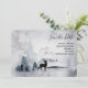 La boda permite guardar la tarjeta de fecha con una imagen acuarela con un reno negro de silueta entre algunos pinos. Combinación de colores neutros en blanco y negro gris.