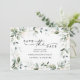 Este diseño elegante cuenta con un suave ramo de acuarela de eucalipto, verde y adornos dorados. Haga clic en el botón Personalizar y "Haga clic para personalizar aún más" para editar el color de la letra del texto. ¡Agregue una foto en el reverso!