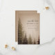 Una elegante boda guardar la fecha con una ilustración de árboles de hoja perenne sobre un fondo marrón.