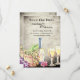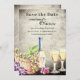 Bodega romántica acuarela de viñedos Ahorra la invitación de matrimonio Date con botella de vino, vasos y uvas en un fondo de estilo vintage. La parte posterior presenta el mismo diseño que se muestra en la parte delantera.