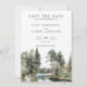 Esta boda rústica acuática con bosques de bosques de lago, salvando la fecha, puede ser personalizada con su información en tipografía moderna. Diseñado por Thisisnotme©