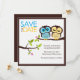 Estos adorables anuncios de fecha guardan un lindo ilustracion vectorial de un par de lechuzas encaramadas en una rama de árbol. Hay muchas combinaciones de colores disponibles en nuestra tienda y más disponibles bajo petición. Estas invitaciones son perfectas para cualquier boda de primavera, verano, otoño o invierno.