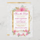 Acuarela Flores rosa y dorada y calabazas blancas en un fondo de encaje blanco floral con borde de Relieve metalizado dorado