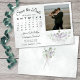 La hermosa tarjeta Save the Date presenta un diseño rústico de moda boho con elegantes letras de guión y un cúmulo de hojas de eucalipto color agua pintadas a mano y flores de lavanda en tonos verde salvia y violeta claro. Hay un calendario de personalizables con un corazón alrededor de la fecha de su boda, además de espacio para su foto, el nombre de la pareja y la ubicación del boda. Elegante, elegante y moda, esta tarjeta es una excelente manera de hacer saber a sus amigos y familia para que ahorren la fecha de su día especial.