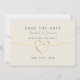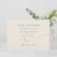 Sencilla, elegante, minimalista invitación de boda en beige neutral con caligrafía moderna y corazón de cuerda dorada.