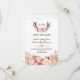 Tarjeta de diseño monograma de ciervo floral rosa rústico con hermosos ciervos de acuarela con ramo floral de rosa, flechas con corazones y un ramo floral como divisor; en la parte posterior divisor floral con iniciales en un fondo blanco. Utilice la herramienta Personalizar para agregar su información. Puede cambiar fuentes, colores. Para artículos coincidentes, visite mi colección Blush Floral Antlers.