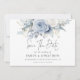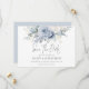 Moderno Boda de código QR de Florals Blue Dusty. Disponible digitalmente e impreso. Magníficos florales en verano azul claro y blanco y un elegante guión para Save The Date. El resto del texto que puedes personalizar fácilmente con tus detalles. Agregue su código QR al sitio web de su boda en la parte posterior o elimine éste y el texto de la parte posterior si no es necesario.