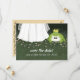 Novia con príncipe rana divertida tarjeta postal de boda para guardar la fecha. Una divertida tarjeta postal de anuncio de boda, fácil de personalizar en la parte delantera y trasera con su propio texto. Una divertida invitación de boda para la novia que siempre ha soñado con la boda de cuento de hadas perfecta con su príncipe azul. Visite Jenn's Doodle World para obtener aún más divertidas invitaciones de boda y suministros originales para planificación de bodas.
