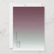El fondo de todas las piezas de este minimalista conjunto boda es un gradiente de colores llamativo, desde el burdeos oscuro hasta el verde sabio suave y el blanco. La tarjeta de boda "Save the Date" que se muestra aquí presenta un diseño elegante y moderno y una fuente sans serif contemporánea para añadir a su sobria elegancia. Agregue fácilmente sus nombres y fecha de boda utilizando la plantilla proporcionada. Busque ID741 para ver el conjunto completo de productos coincidentes en niebla borgoña o elija una de las otras combinaciones de degradados disponibles para adaptarse a su paleta de colores boda.