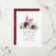 Invitación de boda de degustación de vino floral trendy bordo - marsala y azul marino con acentos de azul polvoriento, rosa claro y oro rosa diseñada para ser personalizada rápida y fácilmente según los detalles de su evento.