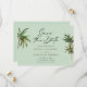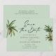 Boda de destino de palmeras tropicales Verde batir la fecha... Nuestra boda con temática tropical Save the Date cuenta con tres palmeras acuarelas que bordean tu invitación personalizada en caligrafía moderna y tipografía sans serif clásica. El delicado y verde reverso de la tarjeta muestra el código QR de su sitio web boda así como la URL del sitio web, lo que permite a sus invitados seguir su viaje boda. El gráfico de código QR y todo el texto de ejemplo se pueden revisar fácilmente con su propia información sobre la plantilla de personalización.