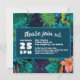 Celebre su boda tropical o de destino con esta plantilla fácil de actualizar. Simplemente complete el nombre, edad, fecha, hora, ubicación de la fiesta y cualquier nota de RSVP u otra información. Cambie de "Marc y Anthony se casan" a "los Willoughby están organizando la Navidad". Disponible en muchos diseños para cada ocasión. El encantador diseño presenta una pintura de acuarela inspirada en las junglas de la selva tropical y las plantas hawaianas en la naturaleza.