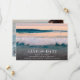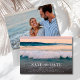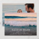 Permita que sus invitados sientan el calor de su amor (¡y la luz del sol!) con esta invitación de "Save the Date" para una boda en la playa de ensueño. La parte delantera presenta un impresionante diseño del océano al atardecer: olas suaves, cielos rosados y ese resplandor sereno y soñador que solo una noche en la playa puede brindar. Dale la vuelta para revelar su foto favorita como pareja, agregando un toque personal y sincero a su anuncio.