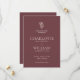 Las letras clásicas y formales guardan la tarjeta de fecha con un dibujo de racimo de uva y nombres completos en letra serif.
