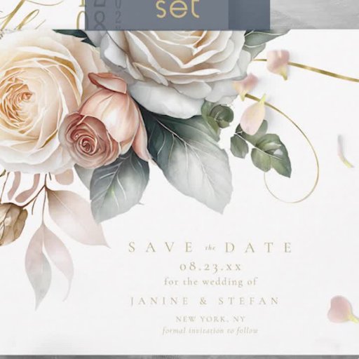 Esta suite boda, con sus flores exuberantes y dramáticas, de color blanco cremoso a rosa rubor, sus toques dorados y sus hermosos fondos acuáticos, crea un ambiente elegante y romántico, que da un toque de lo que los clientes pueden esperar en su gran día. Esta tarjeta única "Save the Date" proporciona una plantilla para añadir fácilmente la mejor foto a mostrar en el marco proporcionado. Un texto de guión floral de esquina y dorado llamativo añaden a la elegancia general de esta tarjeta. Busque ID1022 para ver todos los productos de este conjunto de bodas.