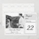 La fecha de su boda seguramente será recordada con este diseño! El diseño presenta un magnífico fondo de la imagen de encaje blanco. La foto que provees aparece como diseño principal y aparecerá en blanco y negro. La fecha de su boda se muestra como si estuviera en un calendario con texto grande. El reverso presenta el mismo aspecto de encaje blanco que el fondo. Gran diseño para el clásico tema de la novia "Old Money". Diseñado para coordinar con la Suite Boda Católica Vintage White Lace.