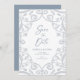Reserva La Fecha Boda de encaje floral plateado suave azul polvorie