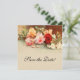 Fácil de personalizar Guardar el anuncio de la fecha. El amor ilustracion vintage y el romance boda floral aún diseño de vida con hermosas flores de jardín primaveral florecientes, rosas antiguos con flores amarillas, rosas, rojas y blancas en flor. Las flores se cortan con algunos pétalos esparcidos por ahí.