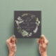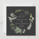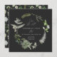 Bodas elegantes y modernas bohemias negras ahorran la tarjeta de invitación de fecha. Hermosas acuarelas botánicas estampadas a mano y texto de escritura. Moderno en diseño negro, blanco, gris y verde.