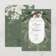 Este diseño presenta un ramo rústico de pino verde y pino sobre un fondo verde de pino con flores blancas. Se acentúa con un resguardo blanco brillante para ilustrar la magia de las hermosas vacaciones de invierno. Ideal para Navidades o bodas de invierno. Esta tarjeta forma parte de la suite Boda Rústica Green Pine Winter Sparkle creada por Simply Farmhouse Press.