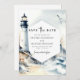 Reserva La Fecha Boda de faro rústico mínimo en el océano