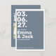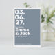 Anuncie su día especial con esta moderna y elegante tarjeta de fecha, diseñada para dar una impresión audaz con su impresionante visualización vertical de fecha blanca sobre un sofisticado fondo azul pizarra. El diseño es limpio y minimalista, con una tipografía contemporánea de bloques blancos de moda que destaca, creando un aspecto fresco e inolvidable perfecto para los bodas modernos. El diseño es espacioso y las líneas nítidas mantienen el diseño fresco y depurado, mientras que la paleta añade un toque de elegancia refinada. Ideal para parejas que buscan una estética cohesiva y de tendencia, esto ahorra la fecha perfectamente coordenadas con invitaciones y tarjetas RSVP, asegurando una suite de papel boda unificada y pulida. El resultado es una invitación de moda sin esfuerzo que marca el tono de una celebración contemporánea llena de estilo e intención.