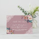 Diseño caprichoso con delicados ramos florales de acuarela en azul polvoriento y rosa polvoriento, un divisor floral, esquinas de encaje, sobre un fondo de rosa polvoriento: en la parte posterior, están las iniciales de los novios. Al ser una plantilla es fácil agregar tu información, cambiar fuentes, colores. Para artículos coincidentes, por favor, visite mi Colección de Flores Rosa Polvoriento.