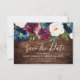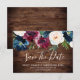 Guardar la fecha para boda de flores burgundy vino tinto madera rústica navy