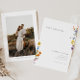Presentamos la manera perfecta de anunciar tu gran día con nuestra boda, salve la tarjeta de fecha! Nuestro minimalista diseño de flor silvestre vintage presenta flores silvestres coloridas que le dan un toque de elegancia y encanto a su evento especial. En el otro lado, puedes personalizar la tarjeta con una foto tuya y de tu futura esposa, lo que la convierte en un lugar único y memorable para ti y tus invitados.
