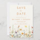 Este diseño combina elegancia y capricho, emparejando un texto moderno mínimo con una hilera de delicadas flores silvestres acuáticas perfectas para bodas de inspiración bohú.