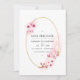 Invitación de boda floral de acuarela rosa con flor de cerezo sakura y marco geométrico dorado personalizable según los detalles de su evento. Ideal para cualquier tema o boda en el jardín.