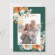 Guardar la Fecha Boda de Foto Floral Elegante Verde Esmeralda Naranja Boda elegante y encantadora con flores de acuarela y tipografía elegante con foto en el reverso de la tarjeta enmarcada con vegetación y flores.