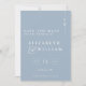 Esta invitación de boda con monograma minimalista azul polvoriento se puede personalizar con tu información en tipografía moderna y una foto especial en el reverso. Diseñado por Thisisnotme©