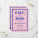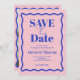 Guardar la fecha de boda de foto ondulada rosa y azul retro