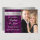 Sencilla, elegante, moderna invitación de guardar fecha de boda con falso plateado y púrpura con foto.