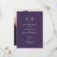 Esta moda de la tarjeta de ahorro minimalista para bodas puede ser personalizada con sus iniciales de monograma y detalles del día de la boda en un fondo morado. Con tu foto especial al revés. Diseñado por Thisisnotme©