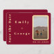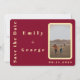 Esta elegante y moderna foto ahorra la invitación de fecha. Cuenta con un vibrante fondo burdeos, esta invitación seguramente hará una declaración. El diseño es elegante y muestra una foto romántica de pareja en un arco, con una tipografía de oro de lujo. La tipografía aporta un toque de sofisticación y atrae la atención hacia la hermosa foto de la pareja. Personalizable para satisfacer sus necesidades específicas, esta invitación es la manera perfecta de anunciar sus próximos nupcias con estilo. No se conformen con una invitación sosa y aburrida - hagan una declaración con esta hermosa foto ahorrando la fecha.
