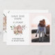 Estas tarjetas de aviso de fecha de salvado de fotos presentan un diseño de arco boho con orquídeas polvorientas y follaje de acuarela. Personalízalas con tu propio texto y foto. Productos coincidentes disponibles.