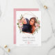 Tarjetas de aviso de boda de acuarela floral rosa rubor y rosa oro con marco geométrico dorado.