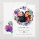 Tarjetas de foto para guardar la fecha de la boda de plantas de cactus suculentas acuarela con acentos de azul, ciruela, menta y verde salvia.