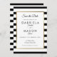 Con un fondo clásico de rayas blancas y negras, esta elegante tarjeta de fecha guarda un elegante borde de Relieve metalizado de oro falso encuadrando los detalles de fecha establecidos en la tipografía de moda. Diseñado por Thisisnotme©