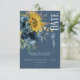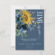 Celebra la calidez y la vitalidad de tu amor con esta impresionante boda de girasol, salve la tarjeta de cita. Los vivos tonos amarillos y marrones de los girasoles, complementados con los polvorientos adornos azules y el frondoso follaje, crean un ambiente cautivador y alegre. El fondo azul oscuro aporta un toque de sofisticación, mientras que el blanco limpio aporta un toque moderno y elegante. Este diseño es la elección perfecta para un boda de verano, capturando la esencia de la felicidad y la celebración. Los huéspedes podrán disfrutar de la calidez y belleza de su día especial con este impresionante diseño. Creado por Simply Farmhouse Press.