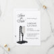Celebra tu amor con esta sofisticada invitación de bodas en blanco y negro que incluye una elegante copa de champán adornada con perlas negras. Perfecto para parejas modernas que planeen un glamuroso evento nocturno o una celebración de corbata negra, este diseño exuberante elegancia y encanto intemporal. Ideal para bodas formales, recepciones de cócteles o temas de inspiración vintage con un toque de lujo. Personalizable completo con sus propios nombres, lugares y detalles.