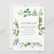 Jazmín, hiedra y helechos salvajes bosque de acuarela tarjeta de aviso de boda con caligrafía elegante diseñada para ser personalizada rápida y fácilmente. Ideal para cualquier tema o boda de jardín.