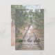 Tarjeta de foto de guardar la fecha moderna y elegante con un efecto de vellum falso. Diseño personalizado elegante y único con espacio para dos fotografías desvanecidas.