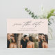 Una foto romántica y simple salva la tarjeta de fecha con una bella caligrafía de escritura, 3 fotos y un texto mínimo en la parte delantera. El reverso incluye el sitio web del boda para más información. Haga clic en el botón de edición para personalizar de este diseño.