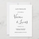 Boda con guión blanco y negro Guardar la tarjeta de fecha con nombres de estilo de firma, este elegante blanco y negro ahorra la tarjeta de fecha se puede personalizar con la información especial del día de la boda en letras de moda.
