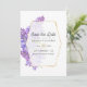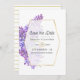 Violeta color de agua - boda floral lila y púrpura salva la tarjeta de fecha con un personalizable de marco geométrico dorado a las especificaciones de tu evento.