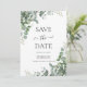 Marque sus calendarios con estilo con nuestra tarjeta de guardar la fecha de la boda de hojas de eucalipto. Con delicados diseños de eucalipto, esta tarjeta anuncia el comienzo de su viaje juntos con elegancia natural. Comparta la emoción de su próximo día de boda con seres queridos de una manera atemporal y hermosa.