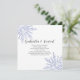 Anuncia tus próximas nupcias con tema de invierno en diciembre, enero o febrero con el festivo anuncio de guardar la fecha de la boda de invierno Copo de Nieve Azul sobre Blanco. Intrincados copos de nieve teñidos de azul adornan las esquinas de este anuncio de guardar la fecha de la boda invernal con fondo blanco. Disponible como invitación impresa para enviar por correo o como descarga digital para compartir fácilmente en línea.